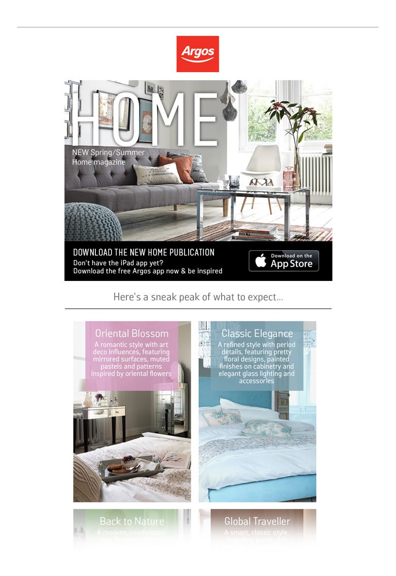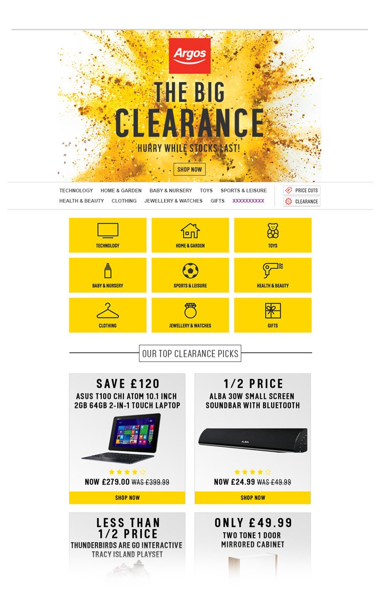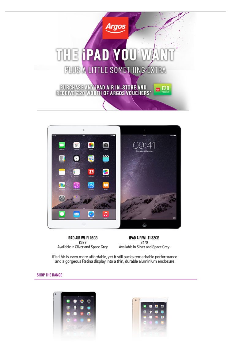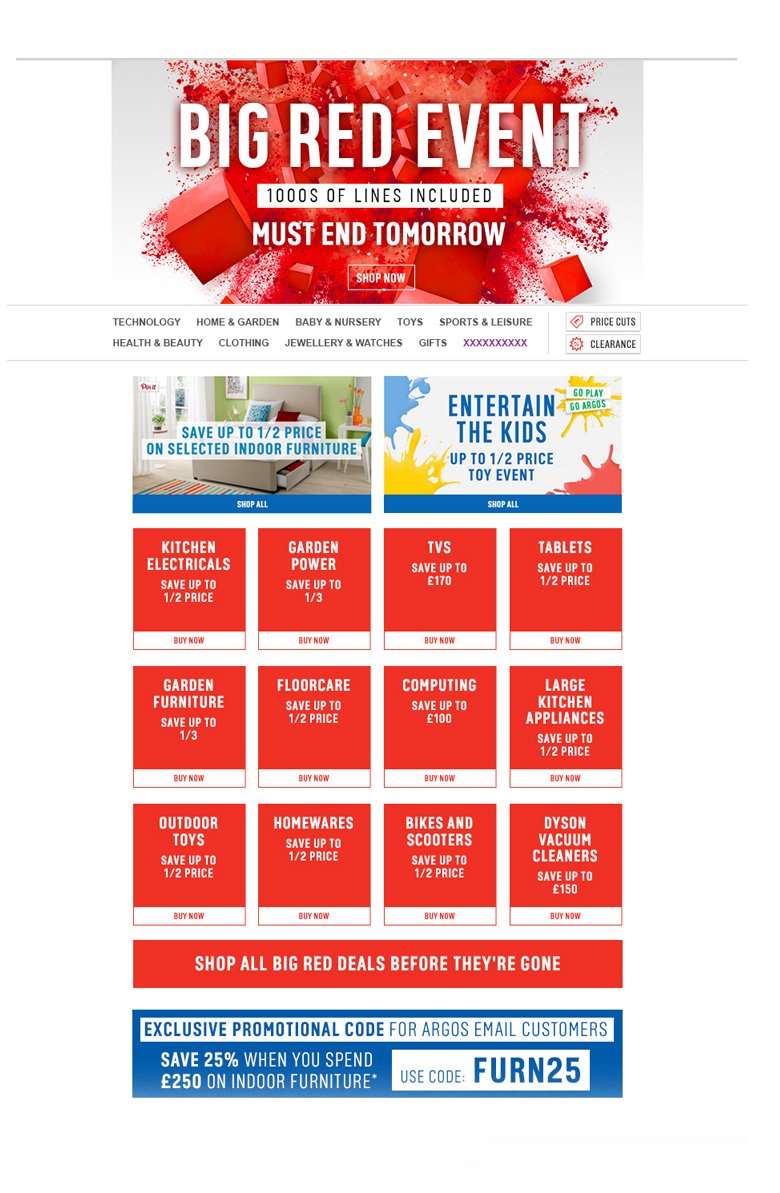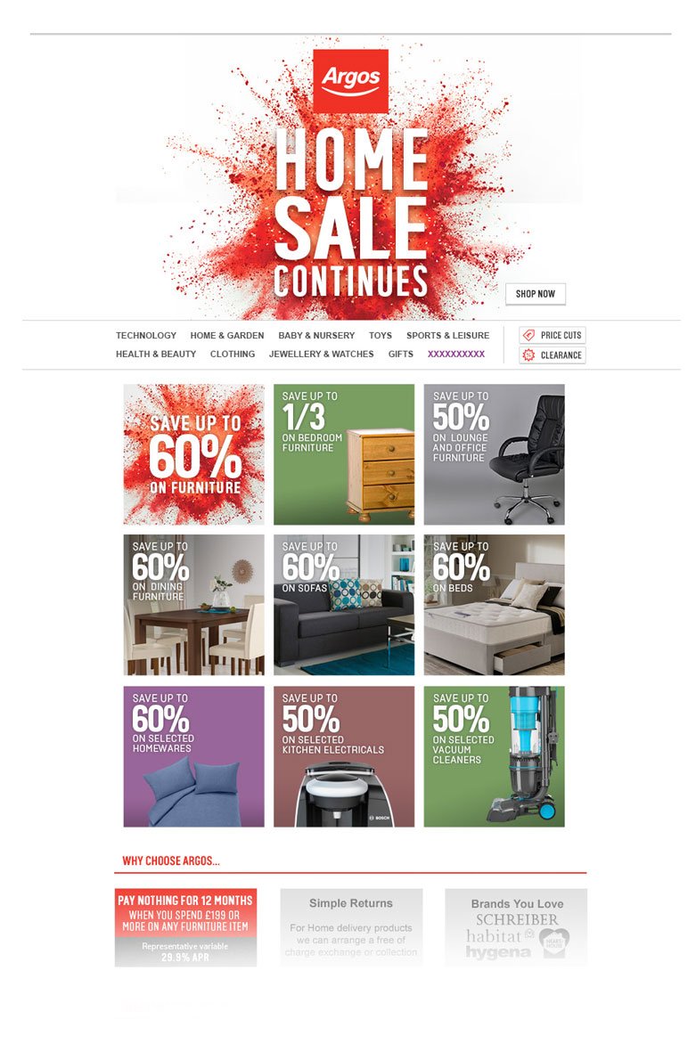 Argos is the UK's largest high street retailer online and has 740 stores nationwide. I worked mostly on e-mail designs to be sent to Argos’ 8.5million email subscribers. I was also involved with designing and coding promotional static web pages and banners.