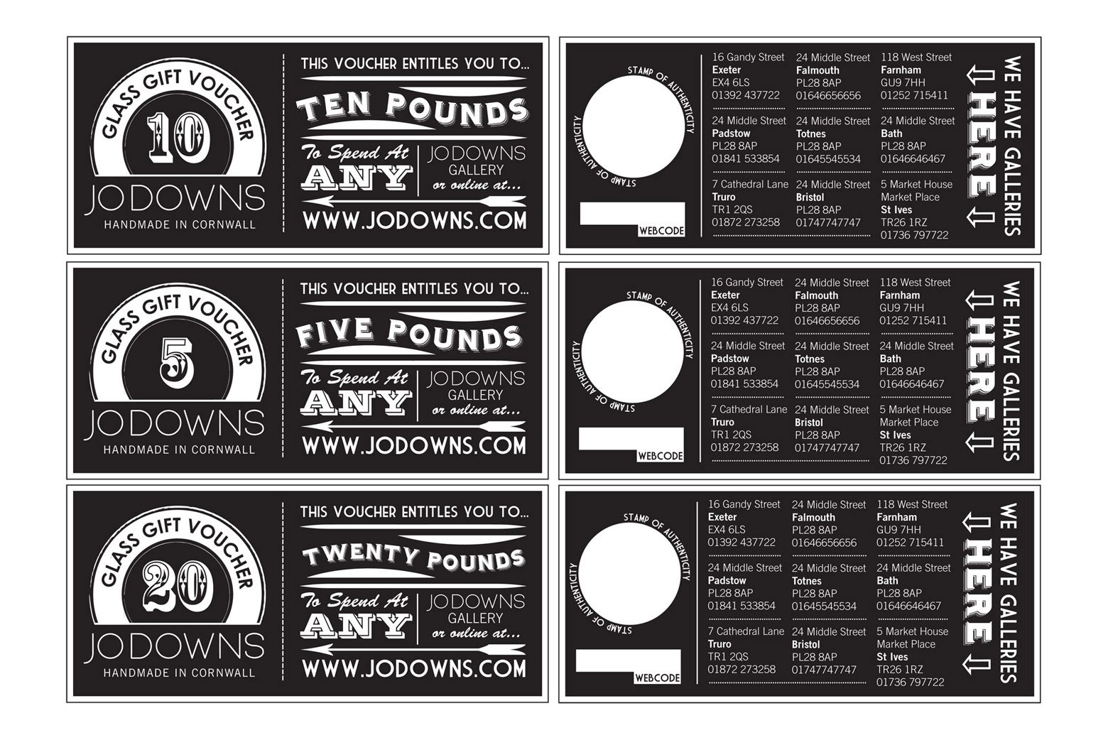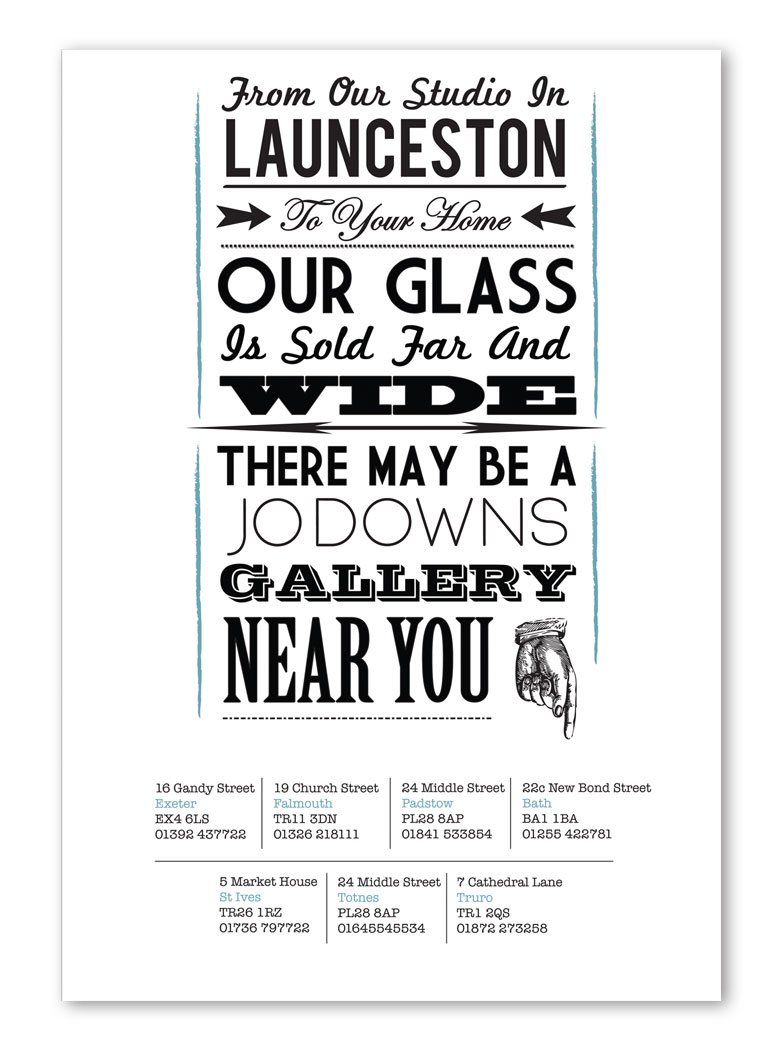 Designs for Jo Downs Handmade Glass before undertaking the brand refresh.